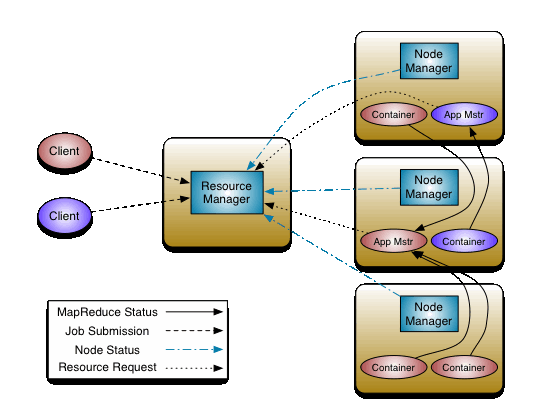 얀에서 리소스 매니저는 주로 스케쥴링 작업에 국한됩니다. 예를 들면 단지 경쟁 응용 프로그램들 간의 시스템에서 사용 가능한 자원을 중재하고 응용프로그램들의 상태 관리는 관심을 가지지 않습니다. 이 때문에 위에서 설명한 모듈 방식과 더불어 분명한 책임의 분리 그리고 이전 포스트에서 설명한 강력한 스케쥴러 API로 인하여, 리소스 매니저는 확장성과 다른 프로그래밍 패러다임에 대한 지원등 가장 중요한 설계 요구 사항을 충족할 수 있습니다. 서로 다른 정책 제한을 허용하기 위해서 리소스 매니저는 플러거블(Pluggable)하고 다른 알고리즘 사용을 허가합니다.